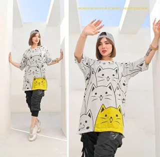 تیشرت گربه ها لانگ زنانه 38 تا 46